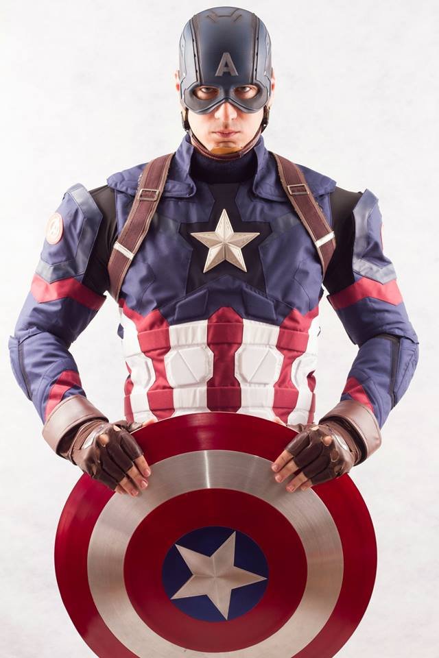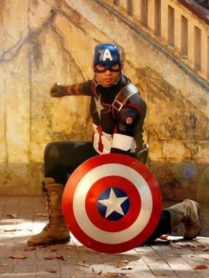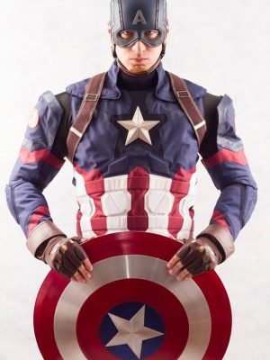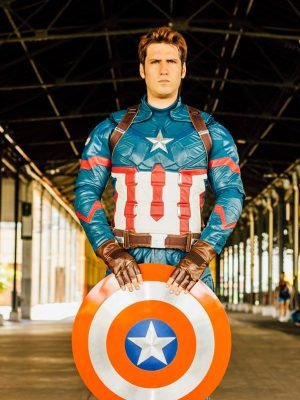 Com o seu inseparável escudo, tem toda a admiração da garotada, mas não é só o coração deles que ele conquistou, somos todos fãs deste poderoso super herói. Ele tem ampla experiência em eventos, leve-o até o seu individualmente, ou com os outros personagens de “Os Vingadores” como o Homem de Ferro, Thor e o Hulk.