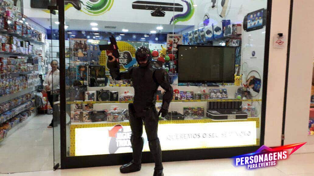 Cheio de pose, vem aí o Robocop! Duvido você não se impressionar com a riqueza de detalhes e imponência do figurino deste personagem! É tão perfeito, que possui leds no capacete e na armadura, se tornando mais real ainda! Este incrível policial do futuro irá chegar ao seu evento e impressionar a todos, e não vai ter sequer uma pessoa que não queira tirar uma foto com ele! Aproveite, este privilégio é para poucos!