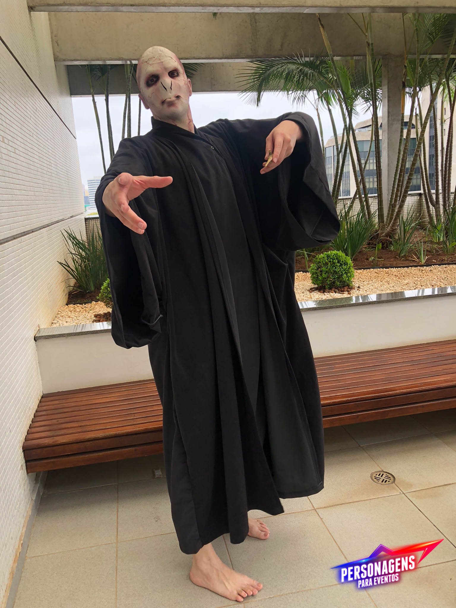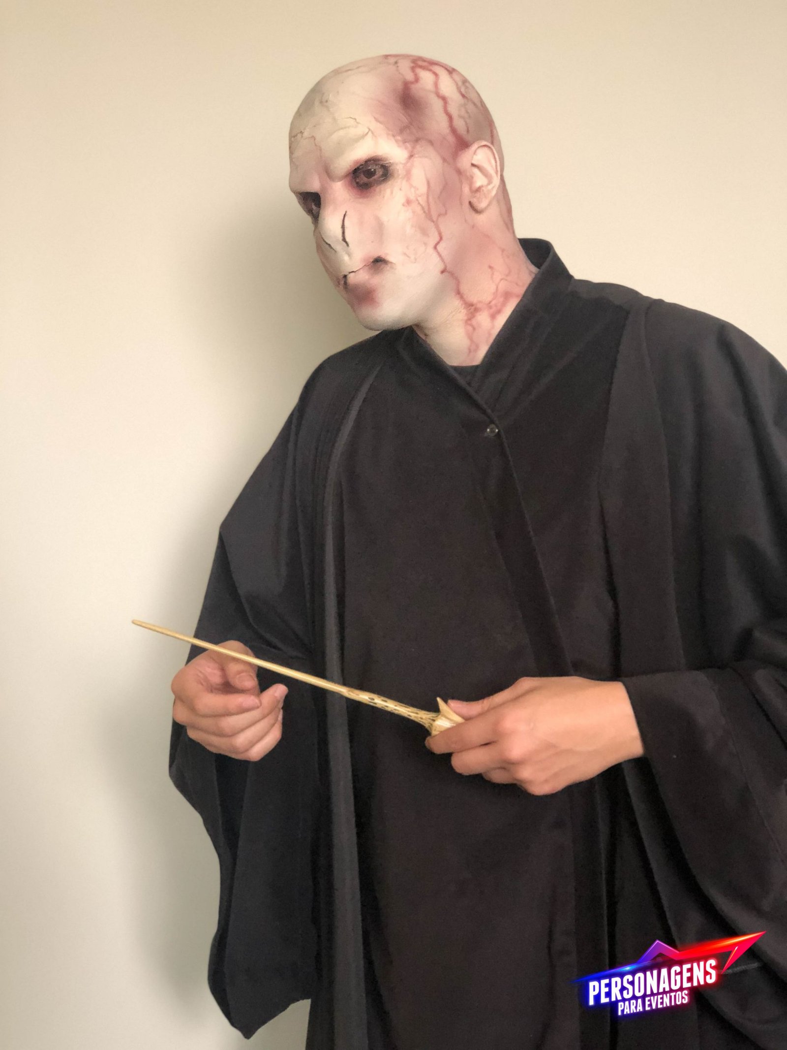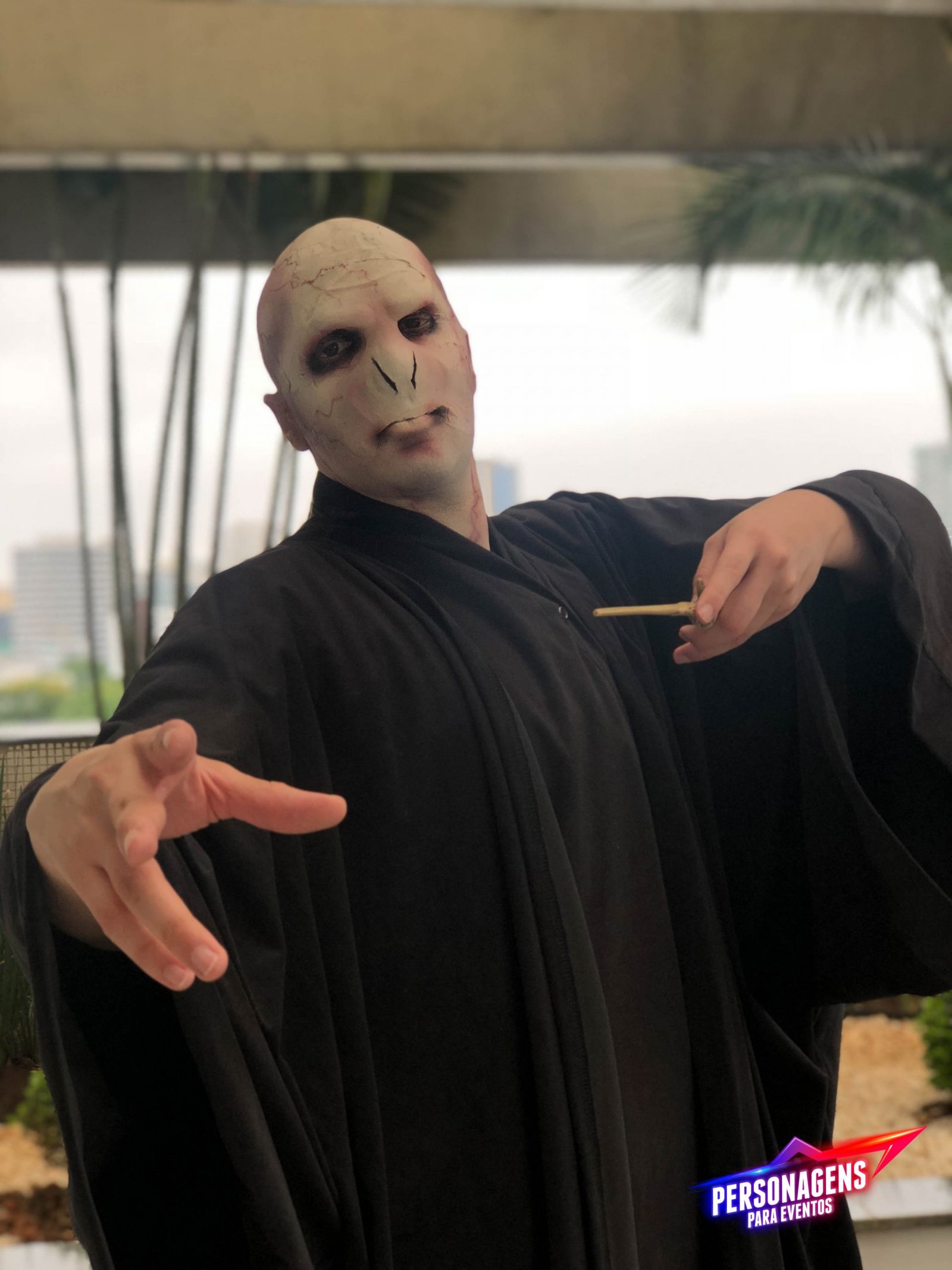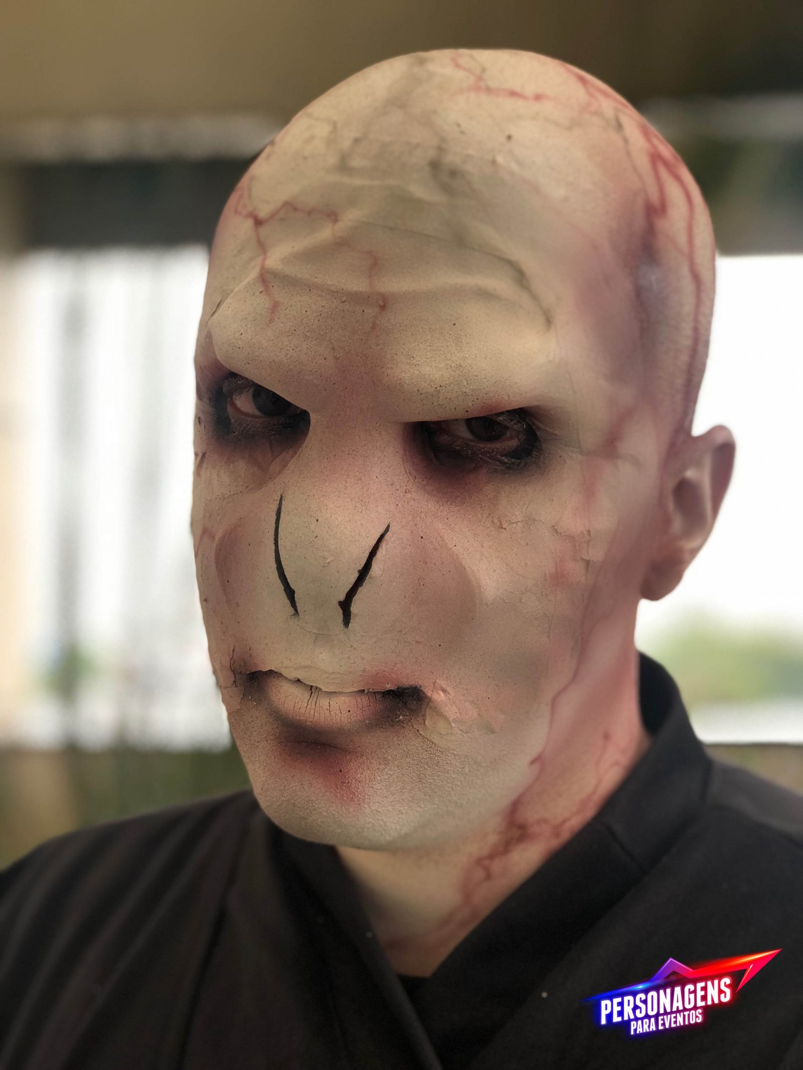 Uau, olha essa maquiagem, que super produção! Nosso Lord Voldemort promete não assustar ninguém, apesar de ser um vilão no filme Harry Potter. Nosso personagem é super simpático e divertido! Ele adora fazer poses para tirarem muitas fotos e garanto que ninguém vai conseguir ficar longe dele!